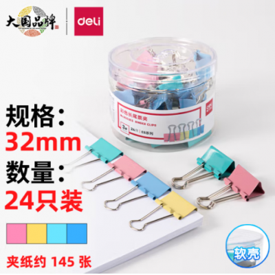 首页 > 办公用品 > 文具 > 得力(deli)24只32mm彩色长尾夹票夹 3#中号金属燕尾夹票据文件夹子 办公用品 8553