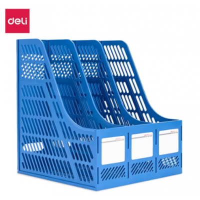 得力(deli) 加厚文件框文件收纳盒文件书架简易立式书立书架桌面办公用品文件夹架筐文件盒桌上资料架 9847 三栏文件框(蓝色)