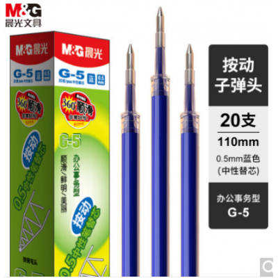 晨光(M&G)文具G-5蓝色0.5mm按动子弹头中性笔芯 签字笔替芯 水笔芯(K35/S01适用) 20支/盒