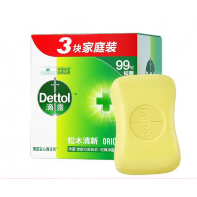 首页 > 办公用品 > 肥(香)皂和合成洗涤剂 > 滴露 115g*3块/组 香皂洗澡洗手皂抑菌洁面香皂(经典松木)
