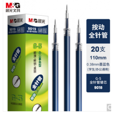 晨光(M&G)文具墨蓝色0.38mm中性笔替芯(蓝黑色) 办公按动签字笔芯 G-5全针管水笔替换芯 20支/盒9019B1