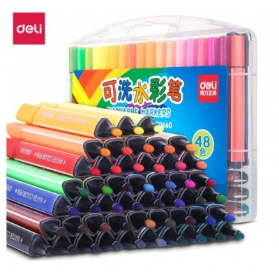 得力70660粗三角杆水彩笔学生手绘粗头画笔学生用涂鸦绘画笔 (混)(48支/盒)