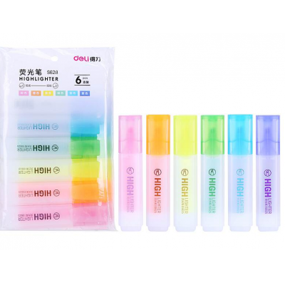 得力S628荧光笔套装(混)(6支/袋)