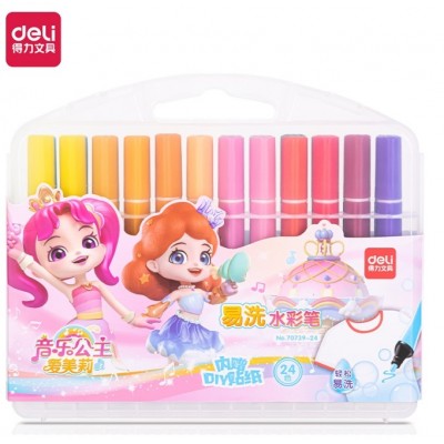 得力(deli)水彩笔可水洗 安全认证 婴童早教启蒙 学生用品 音乐公主三角杆24色 70739