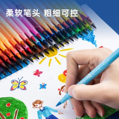 得力(deli)软头可水洗涂鸦笔彩色画画幼儿园儿童彩笔 软头水彩笔套装 (12色)软笔头水彩笔HM555-12