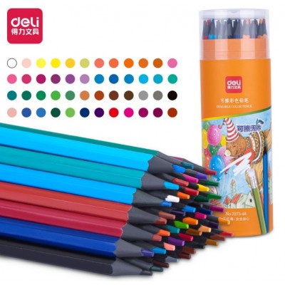 首页 > 办公用品 > 文具 > 得力7073-48色六角杆皮头可擦彩铅学生绘画涂色画笔画具画材美术套装暑假礼物(混)(48色/筒)