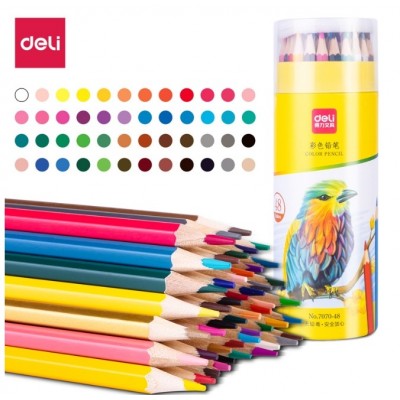 得力(deli)48色油性彩铅 原木六角杆彩色铅笔开学季暑假礼物 学生绘画涂色画笔画具画材美术套装 7070-48