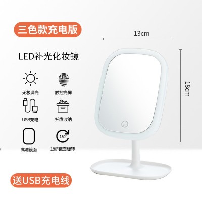 舍镜充电台式补光化妆灯梳妆镜HZJ-1镜子led灯化妆女镜带灯便携公主宿标准款-充电款-混色【三色光】