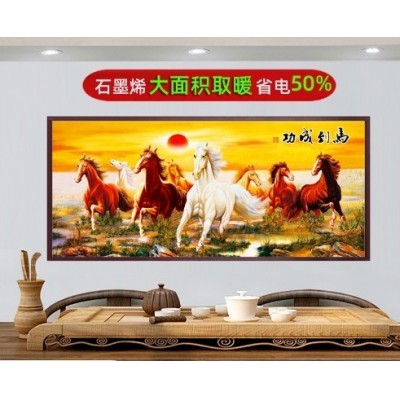 壁挂式电暖器电暖画家用节能电热板石墨烯碳晶墙暖壁画取暖器天雅棕色 1800W马到成功