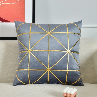 沙发办公室装饰靠垫跨境抱枕套居家布艺简约纯色荷兰绒抱枕Z09金线米字混色45x45cm仅枕套