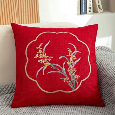 居家简约沙发床头卧室客厅汽车靠背装饰新中式一枝梅刺绣跨境靠枕绣花靠垫-一枝梅-混色45*45cm含芯