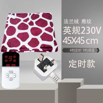 单人加热毯盖毯坐垫办公室加热垫家用电热毯护膝暖身毯英规220v鹿纹定时英文开关45*45cm