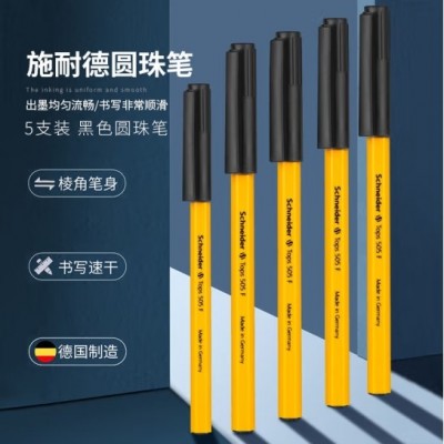 德国施耐德schneider tops505F书写超滑原子笔0.5mm尖黄杆圆珠笔(黑)单支装