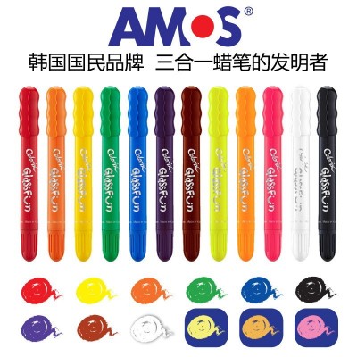 韩国AMOS亚摩斯GF12PC 安全白板12色易水洗玻璃蜡笔颜色鲜艳