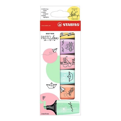 德国stabilo思笔乐淡彩色马卡龙色荧光笔淡黄+淡紫+淡粉+淡蓝+淡绿+淡橙 mini BOSS学生用记号笔(6色套装)