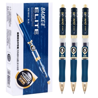 宝克(BAOKE)0.5mm按动蓝黑色中性笔子弹头水笔签名笔处方笔 PC1913 12支/盒