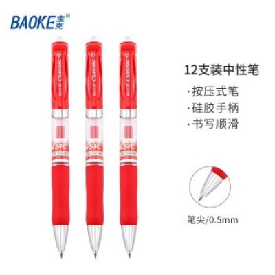 宝克(BAOKE)学生考试用笔 办公商务签名笔文具 红色 按动中性笔 0.5mm顺滑水笔 会议写字记录笔 12支/盒 PC195
