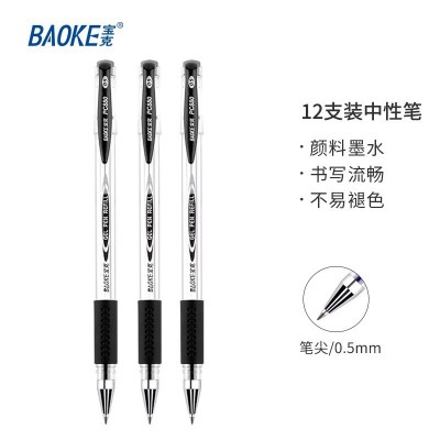 宝克(BAOKE) 商务办公速干签字笔文具 12支/盒 0.5mm中性笔 学生考试水笔 黑色水笔0.5mm PC880A