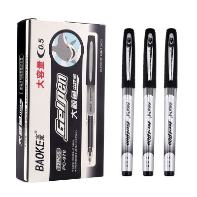 宝克(baoke) 学生考试作业水笔/商务办公签字笔 0.5mm PC978 大容量子弹头中性笔12支装 黑色