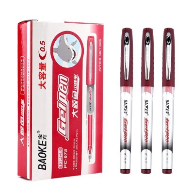 宝克(baoke) 学生考试作业水笔/商务办公签字笔 0.5mm PC978 大容量子弹头中性笔 12支装 红色