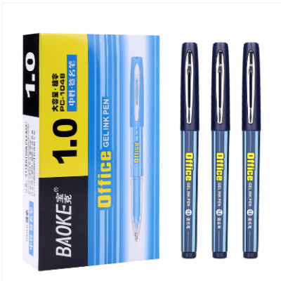 宝克(baoke)学生考试作业水笔/商务办公签字笔 PC1048 大容量子弹头粗字中性笔 1.0mm 12支装 蓝色
