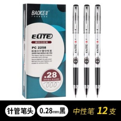 宝克 会计笔细头半针管 【0.28mm】PC2258财务中性笔签字笔 黑色单支装