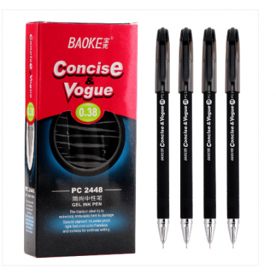 宝克(baoke) 财会办公签字笔/学生作业水性笔 0.38mm PC2448 简尚针管中性笔 黑色 12支装
