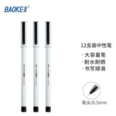 宝克(BAOKE) 学生考试刷题水笔芯 学习办公用品 全针管中性笔 0.5mm黑色办公签字笔 PC2958 黑色 单支装