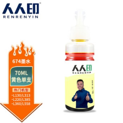 人人印 T674墨水适用爱普生L805 850 1800 810 801 360 101墨仓式打印机 黄色