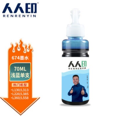 首页 > 办公用品 > 墨水 > 人人印 T674墨水适用爱普生L805 850 1800 810 801 360 101墨仓式打印机 浅蓝色