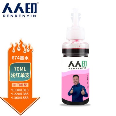首页 > 办公用品 > 墨水 > 人人印 T674墨水适用爱普生L805 850 1800 810 801 360 101墨仓式打印机 浅红色
