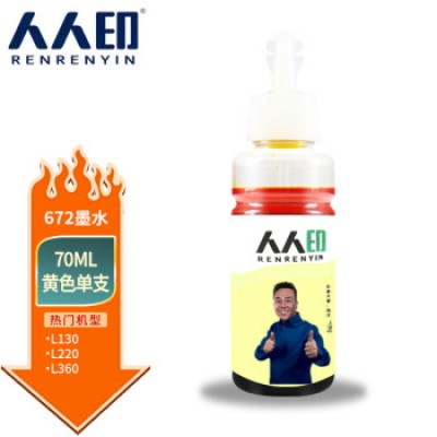 人人印 672墨水70ml黄色 适用爱普生EPSON L360 L310 L380 L351 L130 L313 L301 L1300 L383打印机