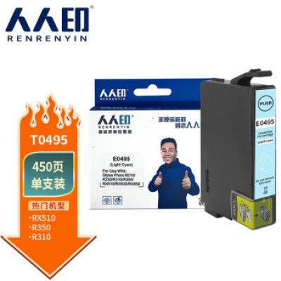 人人印淡蓝色墨盒T0495适用爱普生Epson Stylus Photo R210 R230 R310 R350 RX510 RX630 RX650墨水