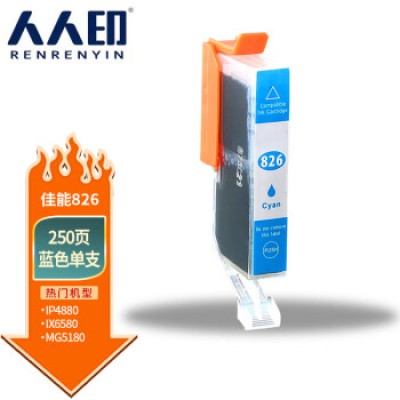 首页 > 办公用品 > 喷墨盒 > 人人印 PGI-826蓝色墨盒 适用佳能ip4880 4980 5380 MX888 MG5180 6180 6280 MG8180 MG8280 IX6580打印机