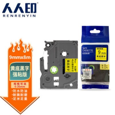 首页 > 办公用品 > 色带 > 人人印 强粘性标签带适用兄弟标签打印机不干胶覆膜标签纸适用兄弟标签机 黄底黑字9mm