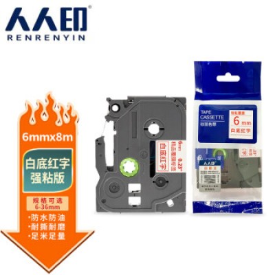 首页 > 办公用品 > 色带 > 人人印 强粘性标签带适用兄弟标签打印机不干胶覆膜标签纸适用兄弟标签机 白底红字6mm