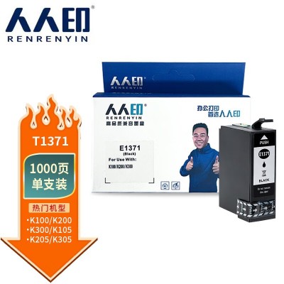 首页 > 办公用品 > 墨水盒 > 人人印 T1371墨盒 适用EPSON爱普生喷墨打印机 K100 K200 T1371墨盒墨水