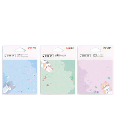得力(deli)21558卡利贴可爱便签纸高颜值学生用动物便签贴纸ins风记事贴 颜色随机 萌趣猫咪 40张/本 21558