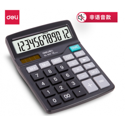 得力 计算器 837 双电源桌面办公计算器12位大屏幕会计用太阳能学生用财务小号便携桌面计算机