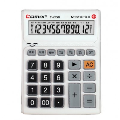 齐心(COMIX) 舒视小台语音计算器 12位显示计算机 学生文具/办公用品 C-858
