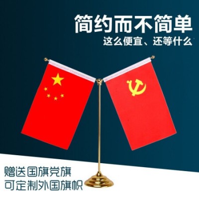 国为(COUVEZI) 【可伸缩】办公室党旗落地国旗带杆摆件室内立式旗杆2米会议室装饰红旗架底座 【桌面国旗党旗摆件】金色Y型