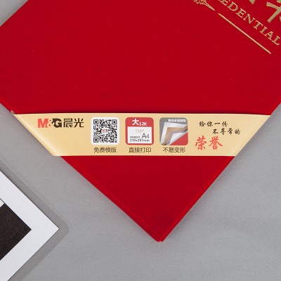 晨光(M&G) 文具 荣誉证书258*180mm烫金竖式证书尊贤系列学校企业褒奖证书 12K绒面 红色