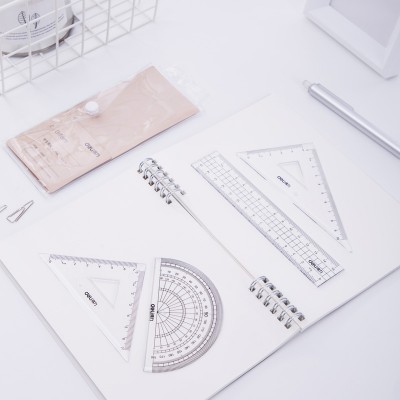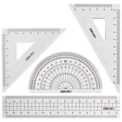 首页 > 办公用品 > 文具 > 得力(deli)15cm牛皮纸系列学生直尺三角尺量角器绘图组合套尺4件套71988