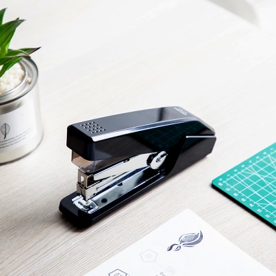 首页 > 办公用品 > 文具 > 得力(deli)省力结构专利订书机/订书器 适配12#订书钉 可装150枚钉 办公用品 黑色0468