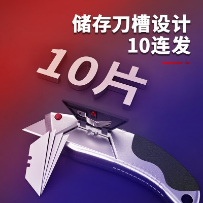得力(deli)DL4262 锌合金割刀10连发美工刀(新VI)(银色)(1把) DL4262 梯形刀片10连发 SK5