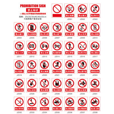 首页 > 建筑建材 > 其他防护用品 > PVC警示牌/标识牌/禁止标识 30*40cm 1mmPVC阻燃板亮面(下单备注详情页对应内容编号)5张装