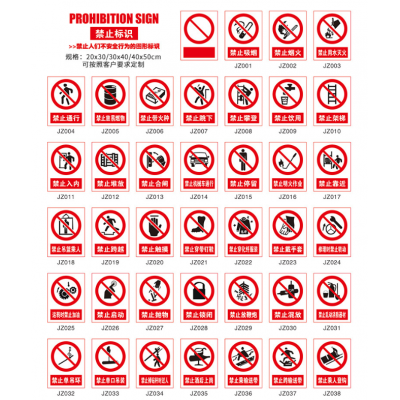 PVC警示牌/标识牌/禁止标识 40*60cm 1mmPVC阻燃板亮面(下单备注详情页对应内容编号)5张装
