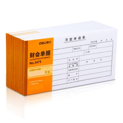 得力(deli)记账凭证财务单据财会单据凭证票据单据办公财务用品 3475 用款申请单 210*105mm