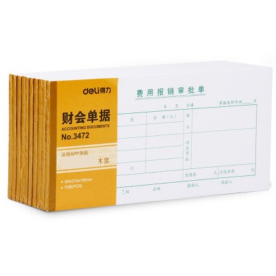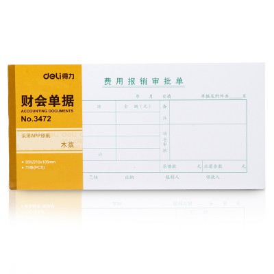 得力(deli)记账凭证财务单据财会单据凭证票据单据办公财务用品 3472 费用报销审批单 210*105mm