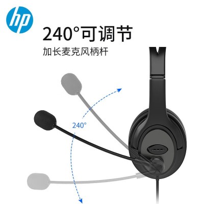 惠普(HP) PC100 Plus 多功能头戴耳机 电脑笔记本游戏语音话筒 电脑办公教育培训学习耳麦 PC100 PLUS黑色